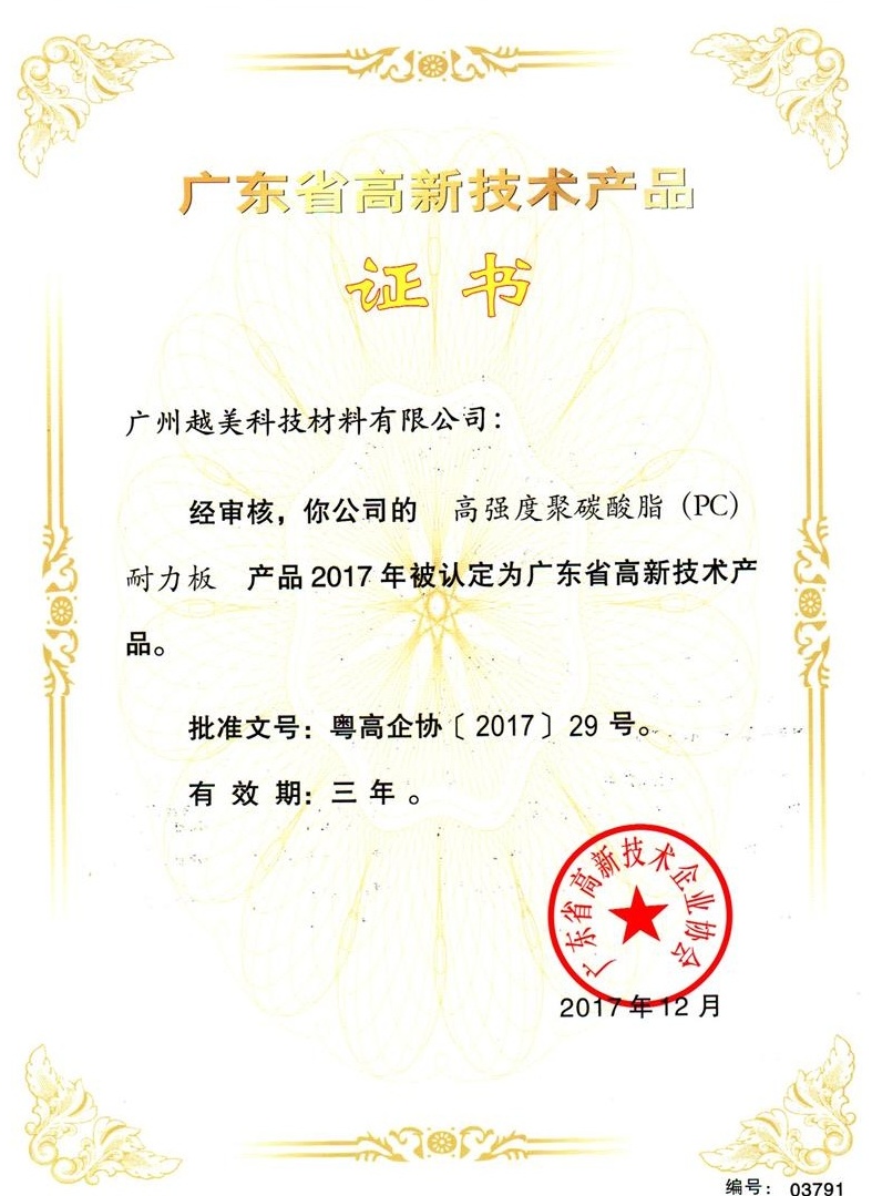 廣州越美科技材料有限公司,始創(chuàng )于1991年,至今有30年歷史,公司根據產(chǎn)業(yè)創(chuàng )新變革升級曾用名注冊6個(gè),現公司名為第六代,是目前國內專(zhuān)業(yè)生產(chǎn)聚碳酸酯PC陽(yáng)光板,PC耐力板,具有獨立知識產(chǎn)權、具備進(jìn)出口資格和一般納稅人資格的產(chǎn)、供、銷(xiāo)一體化的中型民營(yíng)企業(yè)。